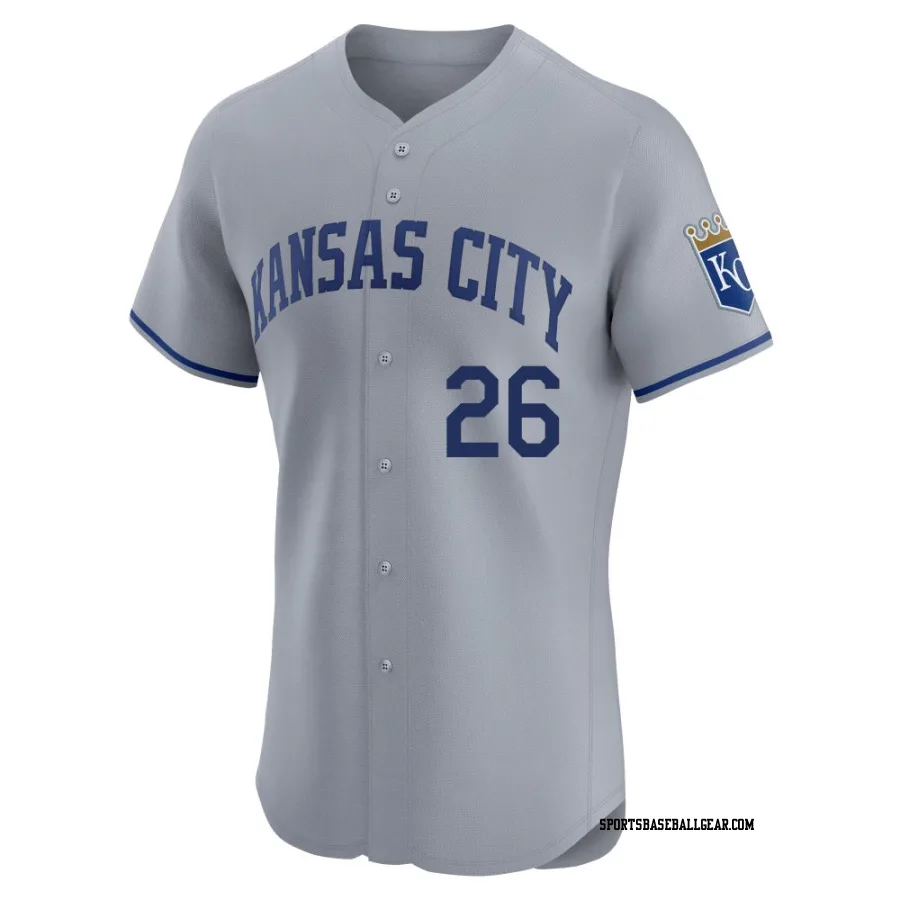 Get the Adam Frazier Men's Kansas City Royals Gray Elite Road Jersey, showcasing the latest design and premium quality for dedicated fans. Elevate your baseball wardrobe now!