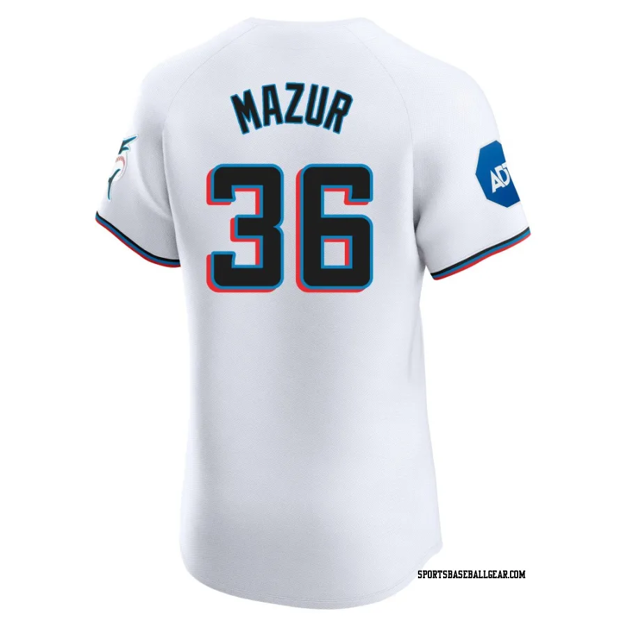 Get the Adam Mazur Men's Miami Marlins White Elite Home Patch Jersey, showcasing the latest design and premium quality for dedicated fans. Elevate your baseball wardrobe now!