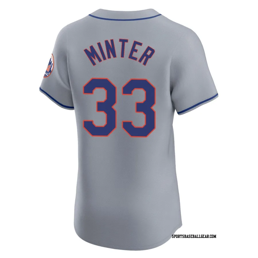 Get the A.J. Minter Men's New York Mets Gray Elite Road Jersey, showcasing the latest design and premium quality for dedicated fans. Elevate your baseball wardrobe now!