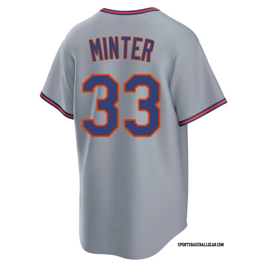 Get the A.J. Minter Men's New York Mets Gray Replica Away 2.0 Jersey, showcasing the latest design and premium quality for dedicated fans. Elevate your baseball wardrobe now!