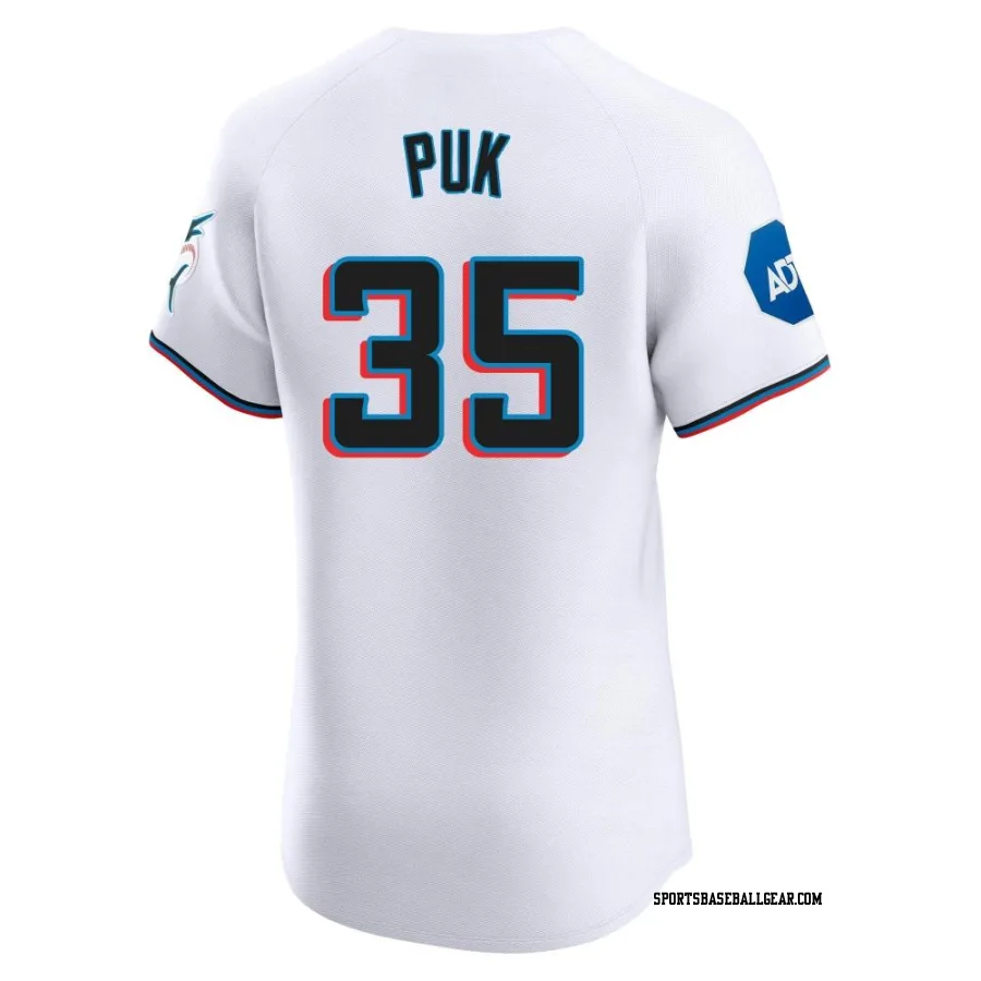 Get the A.J. Puk Men's Miami Marlins White Elite Home Patch Jersey, showcasing the latest design and premium quality for dedicated fans. Elevate your baseball wardrobe now!