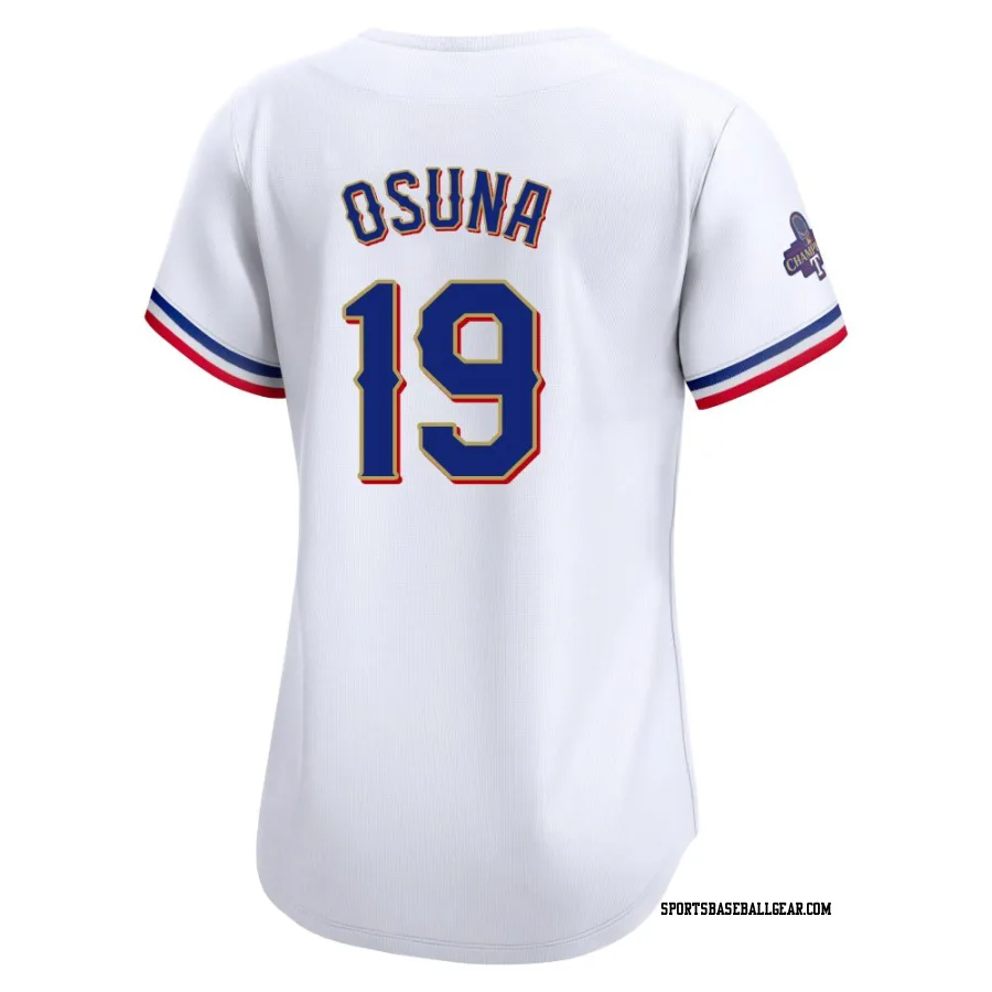 Get the Alejandro Osuna Women's Texas Rangers Gold Limited White 2024 Collection Jersey, showcasing the latest design and premium quality for dedicated fans. Elevate your baseball wardrobe now!
