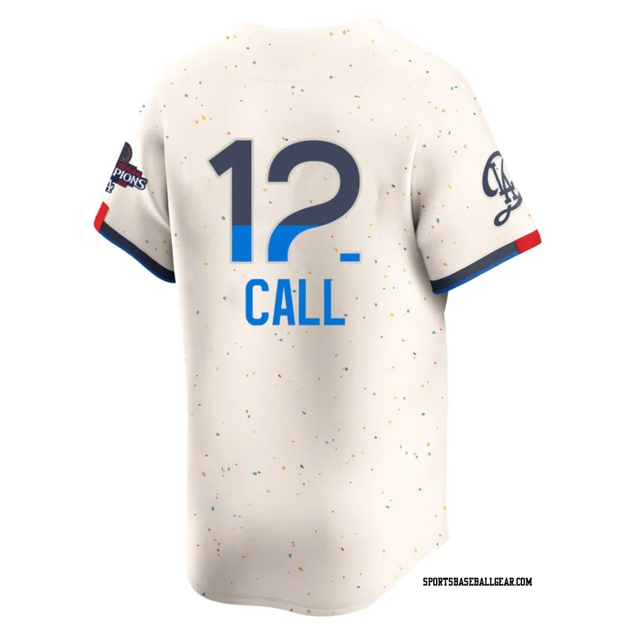 Get the Alex Call Men's Los Angeles Dodgers Cream Limited 2024 City Connect World Series Champions Jersey, showcasing the latest design and premium quality for dedicated fans. Elevate your baseball wardrobe now!