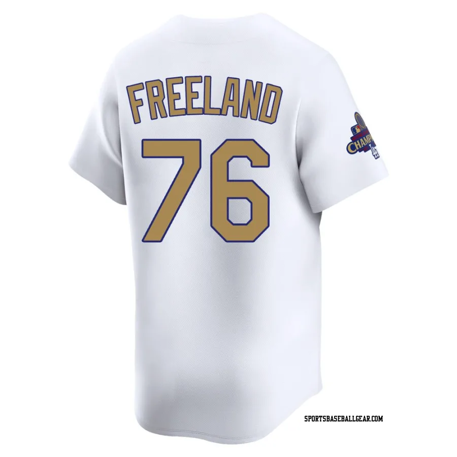 Get the Alex Freeland Men's Los Angeles Dodgers Gold Limited White 2025 Collection Jersey, showcasing the latest design and premium quality for dedicated fans. Elevate your baseball wardrobe now!