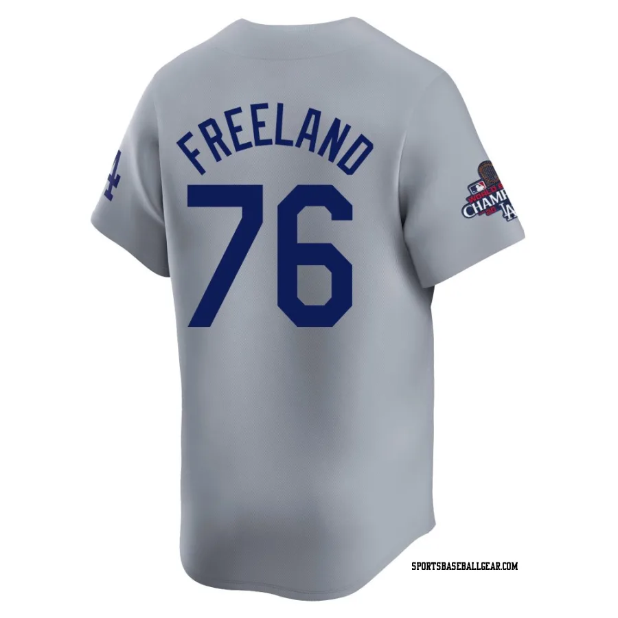 Get the Alex Freeland Men's Los Angeles Dodgers Gray Limited Away World Series Champions Jersey, showcasing the latest design and premium quality for dedicated fans. Elevate your baseball wardrobe now!