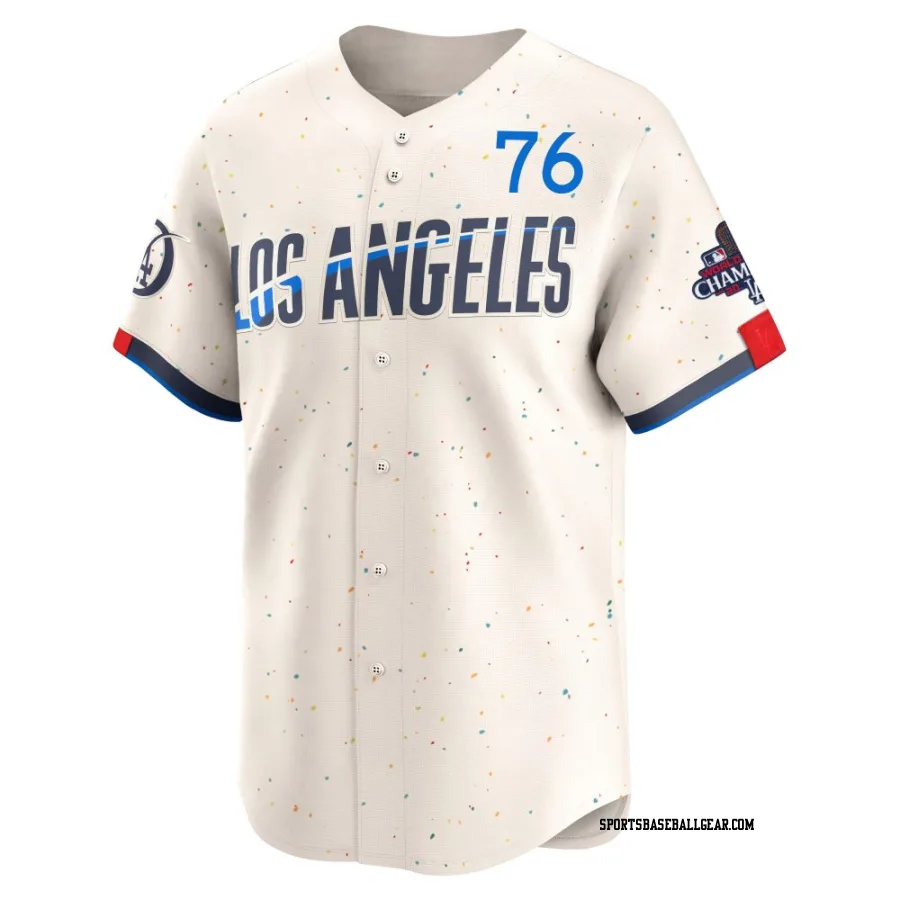 Get the Alex Freeland Youth Los Angeles Dodgers Cream Limited 2024 City Connect World Series Champions Jersey, showcasing the latest design and premium quality for dedicated fans. Elevate your baseball wardrobe now!