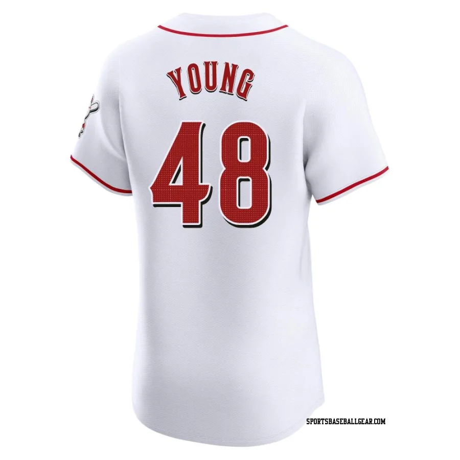 Get the Alex Young Men's Cincinnati Reds White Elite Home Jersey, showcasing the latest design and premium quality for dedicated fans. Elevate your baseball wardrobe now!