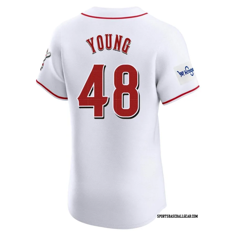 Get the Alex Young Men's Cincinnati Reds White Elite Home Patch Jersey, showcasing the latest design and premium quality for dedicated fans. Elevate your baseball wardrobe now!
