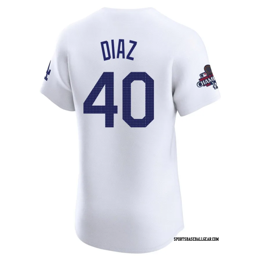 Get the Alexis Diaz Men's Los Angeles Dodgers White Elite Home World Series Champions Jersey, showcasing the latest design and premium quality for dedicated fans. Elevate your baseball wardrobe now!