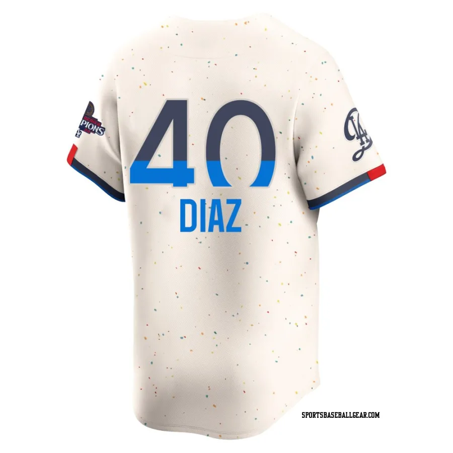 Get the Alexis Diaz Youth Los Angeles Dodgers Cream Limited 2024 City Connect World Series Champions Jersey, showcasing the latest design and premium quality for dedicated fans. Elevate your baseball wardrobe now!