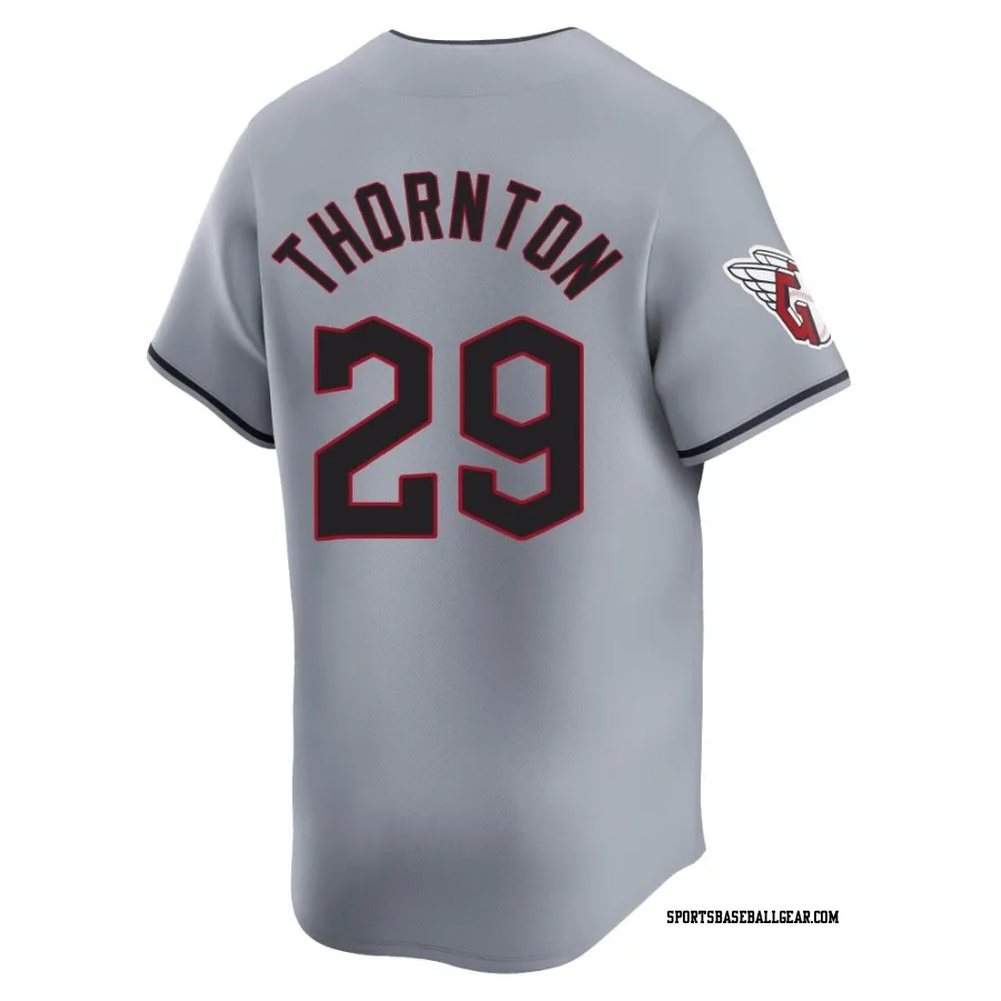 Get the Andre Thornton Men's Cleveland Guardians Gray Limited Road Jersey, showcasing the latest design and premium quality for dedicated fans. Elevate your baseball wardrobe now!
