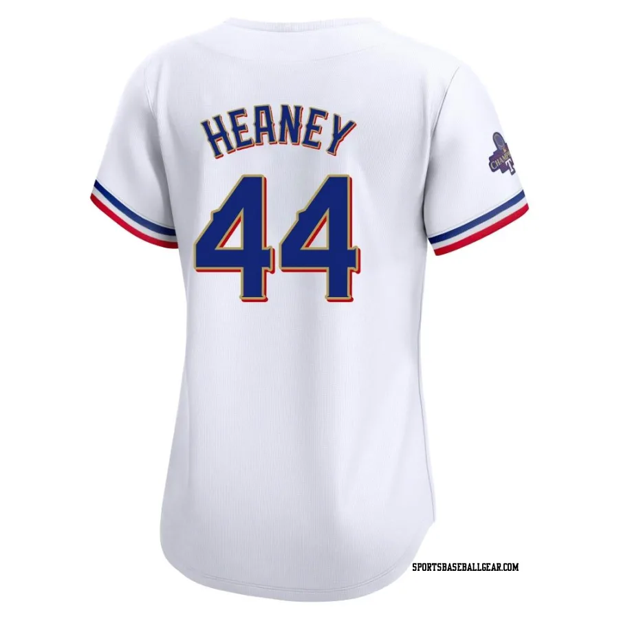 Get the Andrew Heaney Women's Texas Rangers Gold Limited White 2024 Collection Jersey, showcasing the latest design and premium quality for dedicated fans. Elevate your baseball wardrobe now!