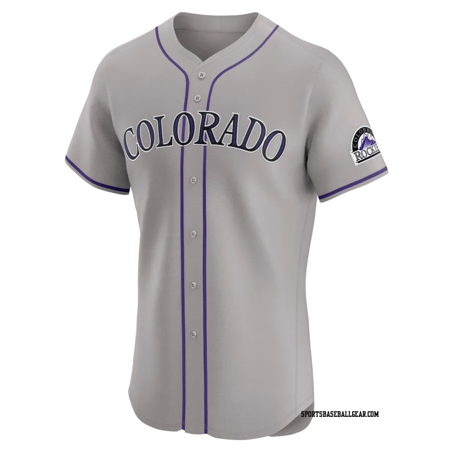 Get the Angel Chivilli Men's Colorado Rockies Gray Elite Road Jersey, showcasing the latest design and premium quality for dedicated fans. Elevate your baseball wardrobe now!