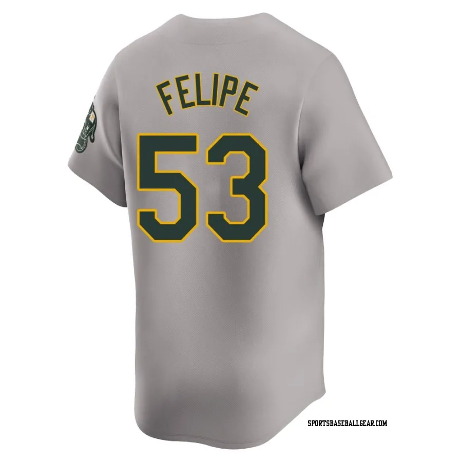Get the Angel Felipe Men's Oakland Athletics Gray Limited Away Jersey, showcasing the latest design and premium quality for dedicated fans. Elevate your baseball wardrobe now!