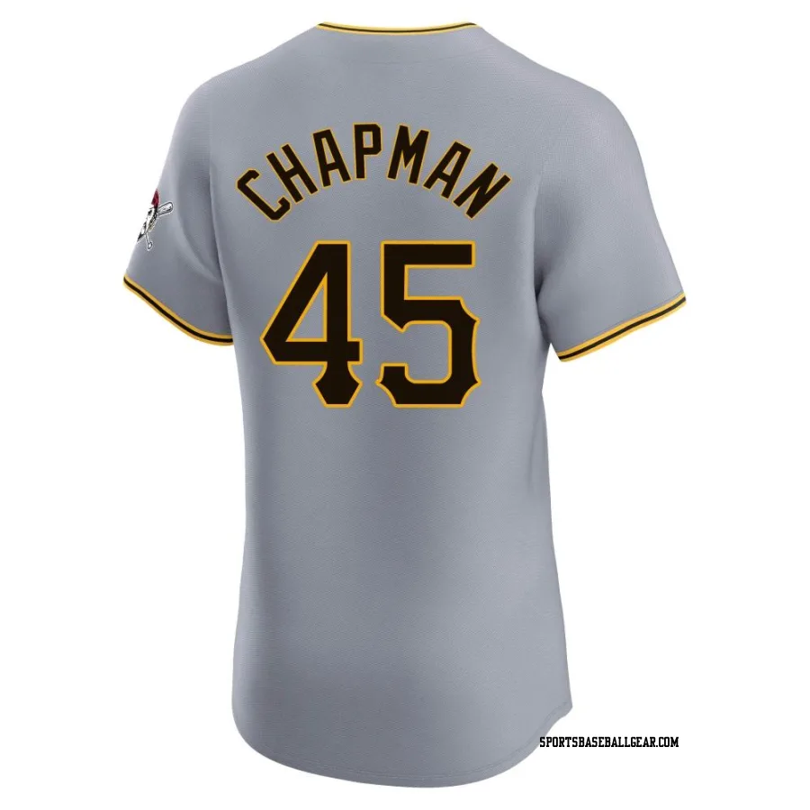 Get the Aroldis Chapman Men's Pittsburgh Pirates Gray Elite Road Jersey, showcasing the latest design and premium quality for dedicated fans. Elevate your baseball wardrobe now!