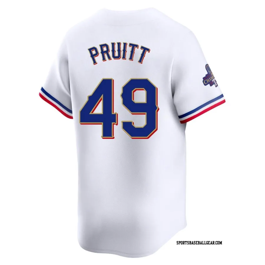 Get the Austin Pruitt Men's Texas Rangers Gold Limited White 2024 Collection Jersey, showcasing the latest design and premium quality for dedicated fans. Elevate your baseball wardrobe now!