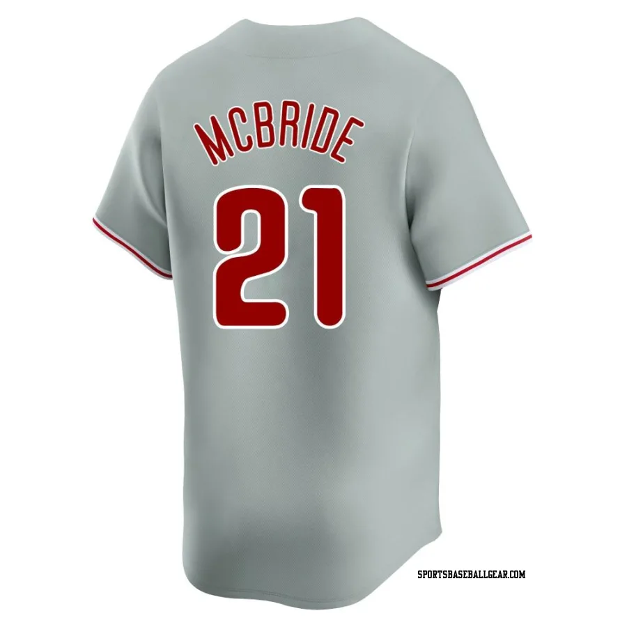 Get the Bake Mcbride Men's Philadelphia Phillies Gray Limited Away Jersey, showcasing the latest design and premium quality for dedicated fans. Elevate your baseball wardrobe now!