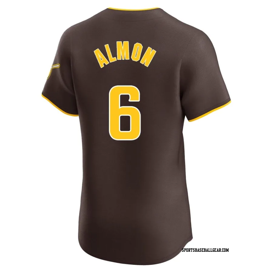 Get the Bill Almon Men's San Diego Padres Brown Elite Road Vapor Premier Jersey, showcasing the latest design and premium quality for dedicated fans. Elevate your baseball wardrobe now!
