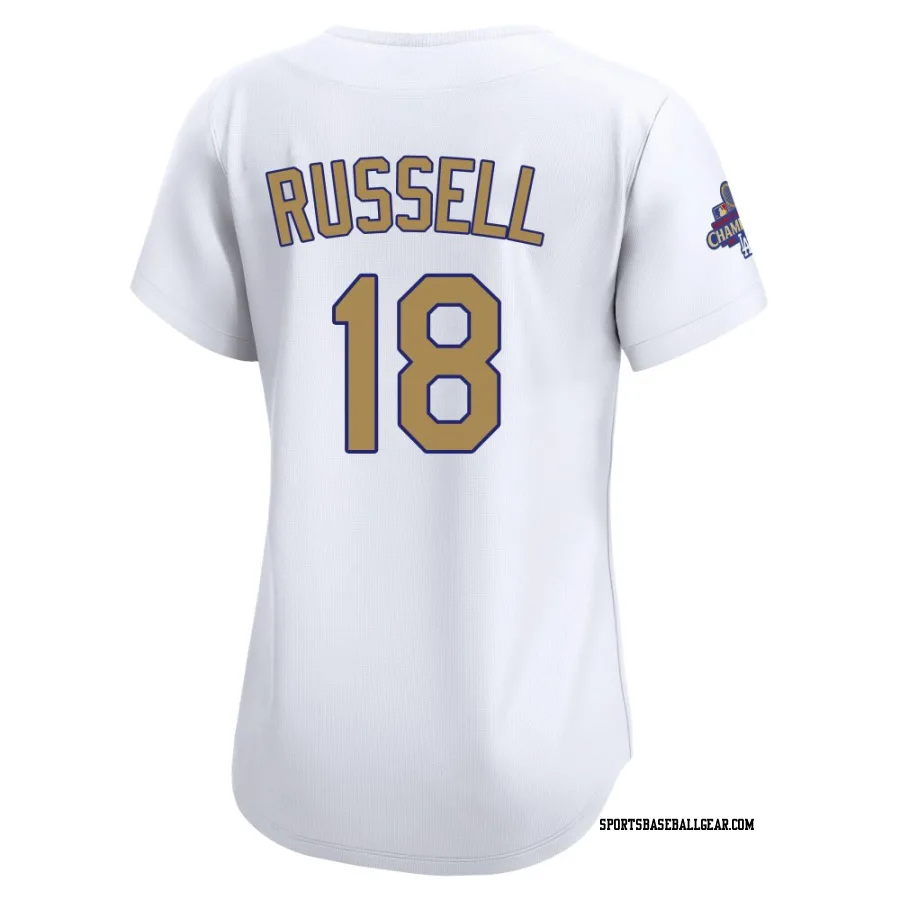 Get the Bill Russell Women's Los Angeles Dodgers Gold Limited White 2025 Collection Jersey, showcasing the latest design and premium quality for dedicated fans. Elevate your baseball wardrobe now!