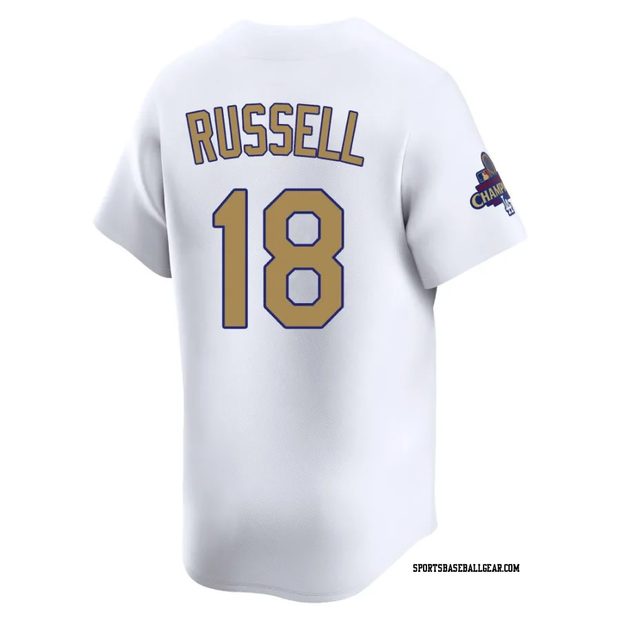 Get the Bill Russell Youth Los Angeles Dodgers Gold Limited White 2025 Collection Jersey, showcasing the latest design and premium quality for dedicated fans. Elevate your baseball wardrobe now!