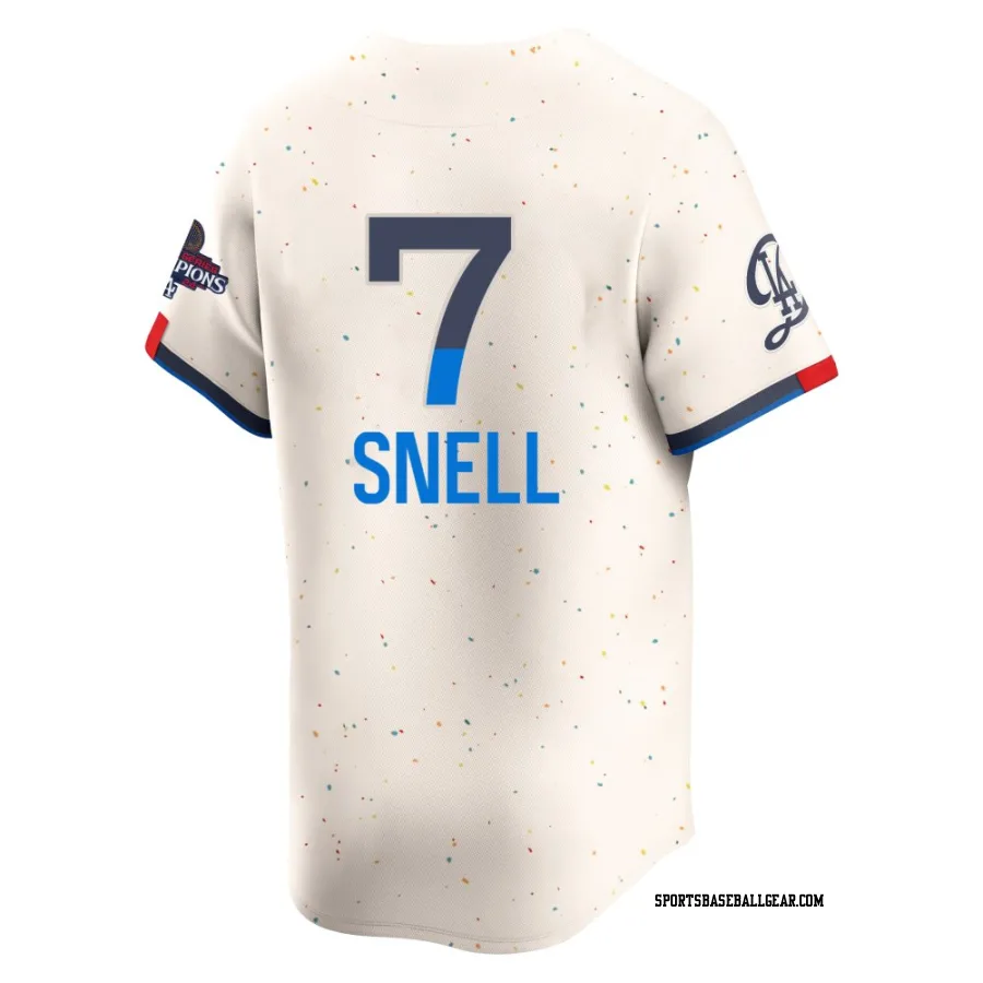 Get the Blake Snell Men's Los Angeles Dodgers Cream Limited 2024 City Connect World Series Champions Jersey, showcasing the latest design and premium quality for dedicated fans. Elevate your baseball wardrobe now!