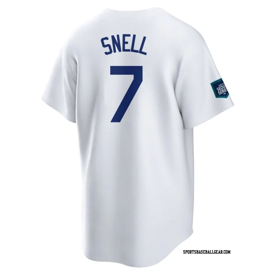 Get the Blake Snell Men's Los Angeles Dodgers White Replica 2024 World Tour Seoul Series Home Jersey, showcasing the latest design and premium quality for dedicated fans. Elevate your baseball wardrobe now!