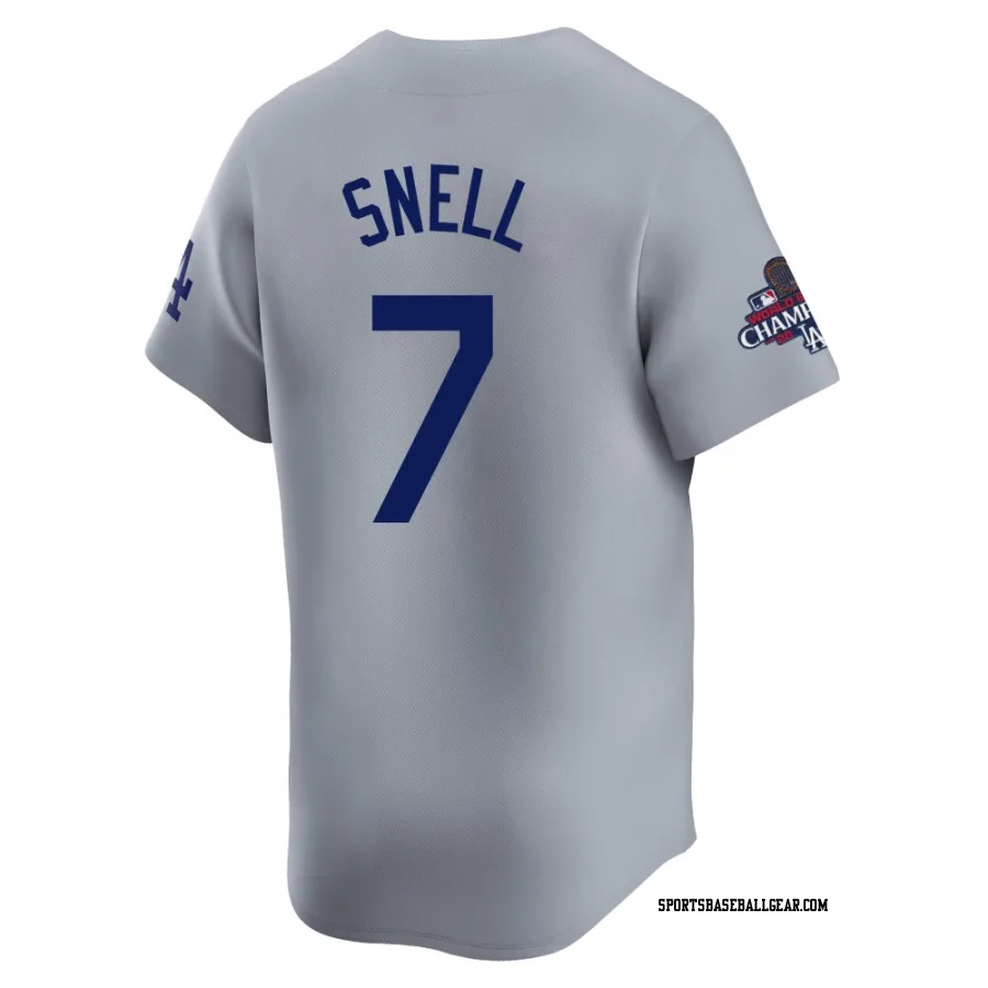 Get the Blake Snell Youth Los Angeles Dodgers Gray Limited Away World Series Champions Jersey, showcasing the latest design and premium quality for dedicated fans. Elevate your baseball wardrobe now!