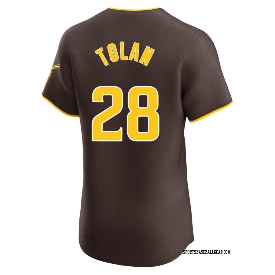 Get the Bobby Tolan Men's San Diego Padres Brown Elite Road Vapor Premier Jersey, showcasing the latest design and premium quality for dedicated fans. Elevate your baseball wardrobe now!