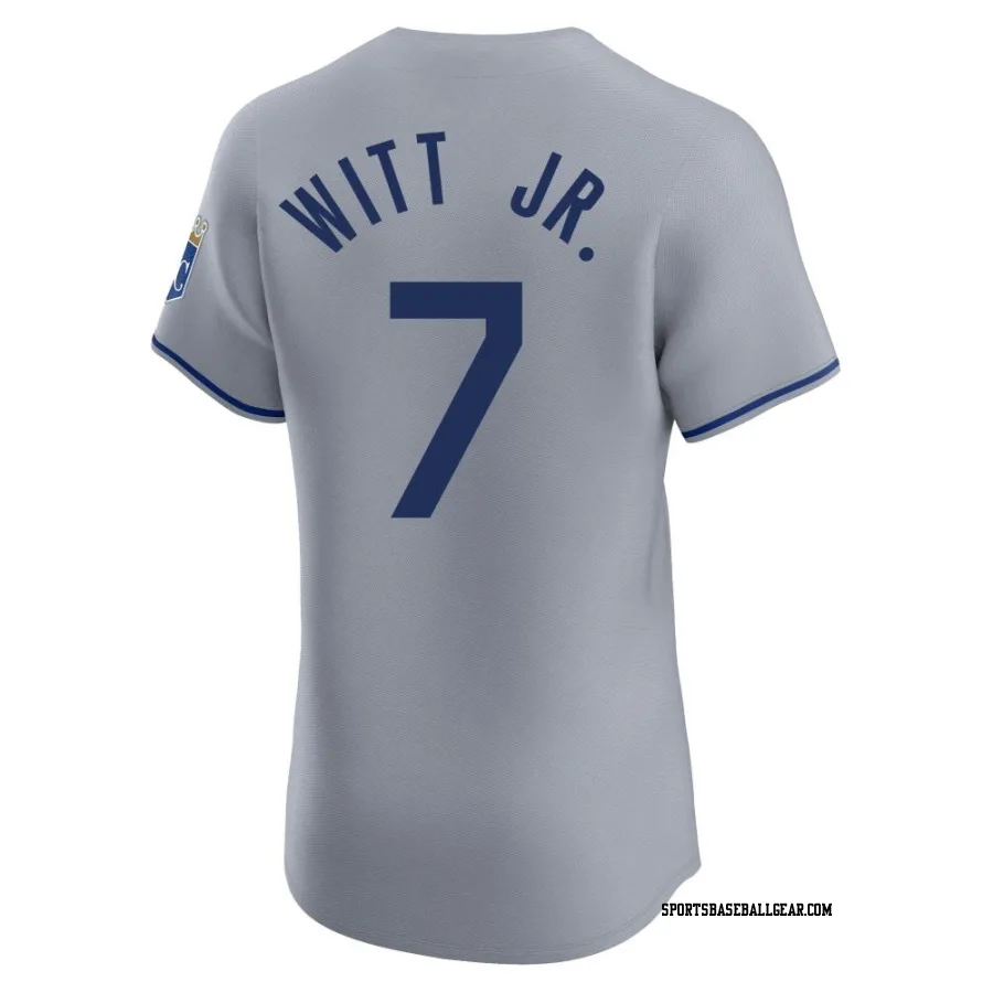 Get the Bobby Witt Jr. Men's Kansas City Royals Gray Elite Road Jersey, showcasing the latest design and premium quality for dedicated fans. Elevate your baseball wardrobe now!