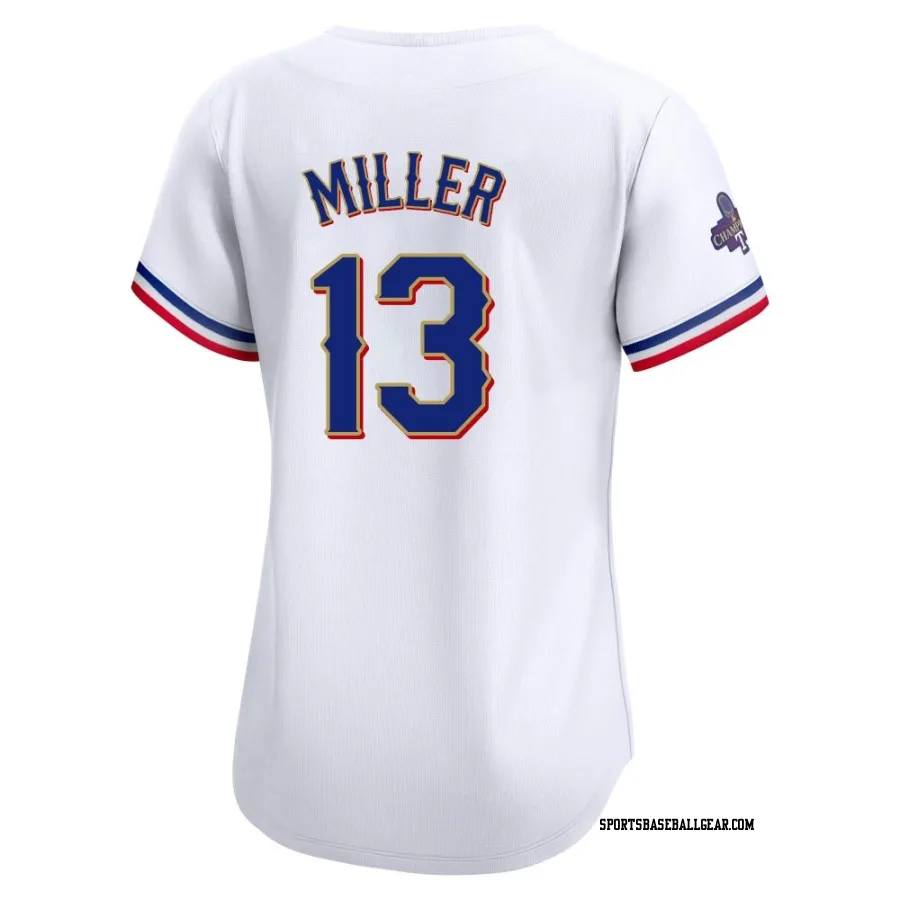 Get the Brad Miller Women's Texas Rangers Gold Limited White 2024 Collection Jersey, showcasing the latest design and premium quality for dedicated fans. Elevate your baseball wardrobe now!