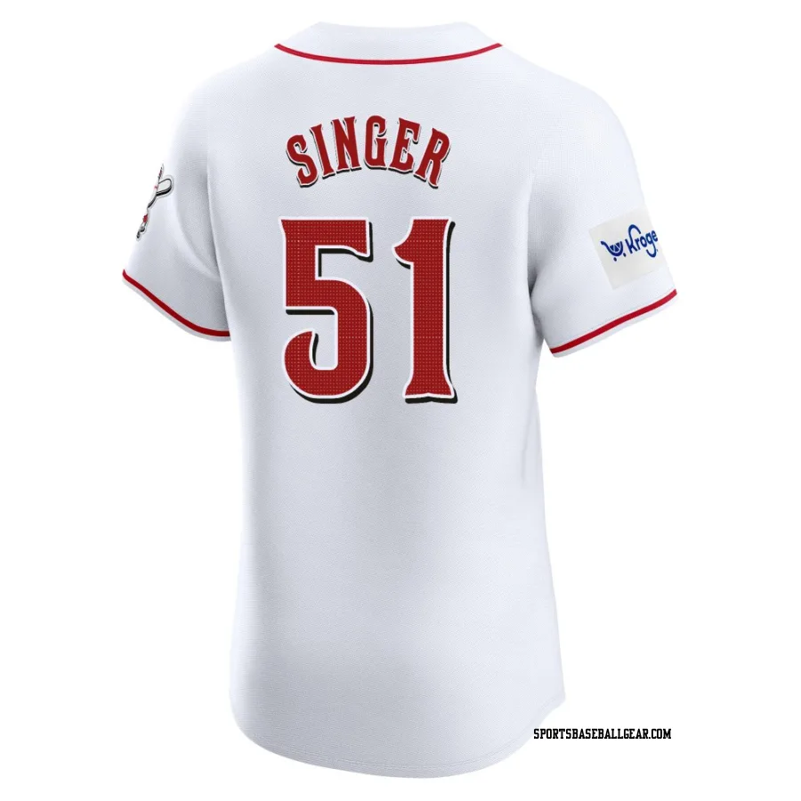 Brady Singer Men's Cincinnati Reds White Elite Home Patch Jersey