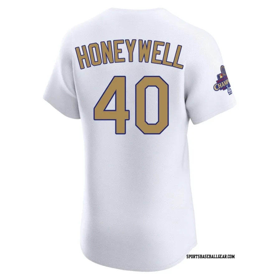 Get the Brent Honeywell Men's Los Angeles Dodgers Gold Elite White 2025 Collection Jersey, showcasing the latest design and premium quality for dedicated fans. Elevate your baseball wardrobe now!