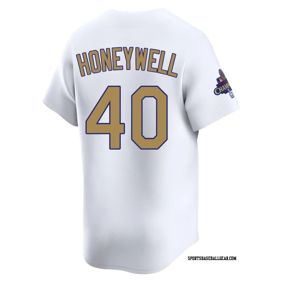 Get the Brent Honeywell Youth Los Angeles Dodgers Gold Limited White 2025 Collection Jersey, showcasing the latest design and premium quality for dedicated fans. Elevate your baseball wardrobe now!