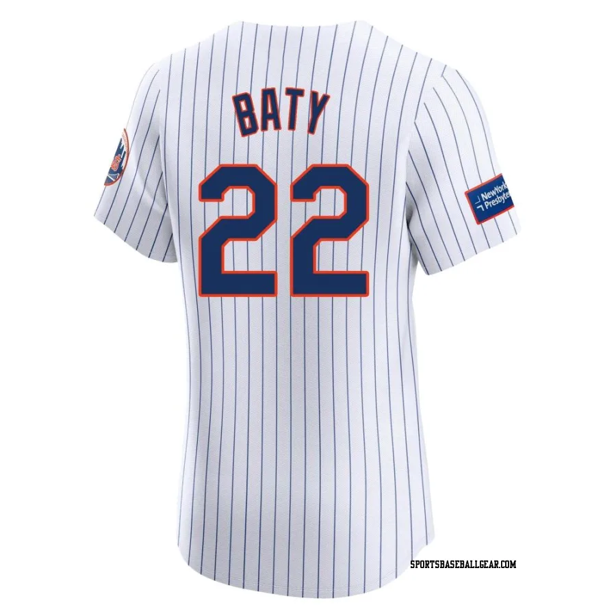 Get the Brett Baty Men's New York Mets White Elite Home Patch Jersey, showcasing the latest design and premium quality for dedicated fans. Elevate your baseball wardrobe now!