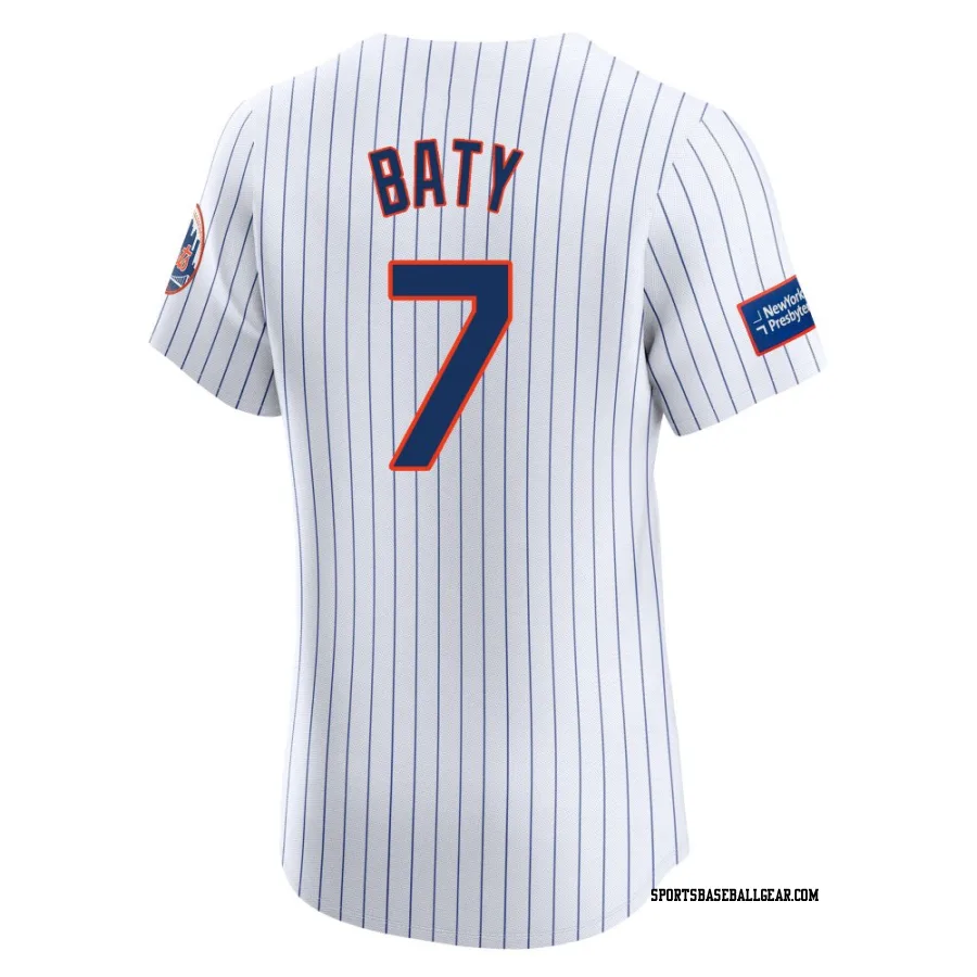 Get the Brett Baty Men's New York Mets White Elite Home Patch Jersey, showcasing the latest design and premium quality for dedicated fans. Elevate your baseball wardrobe now!