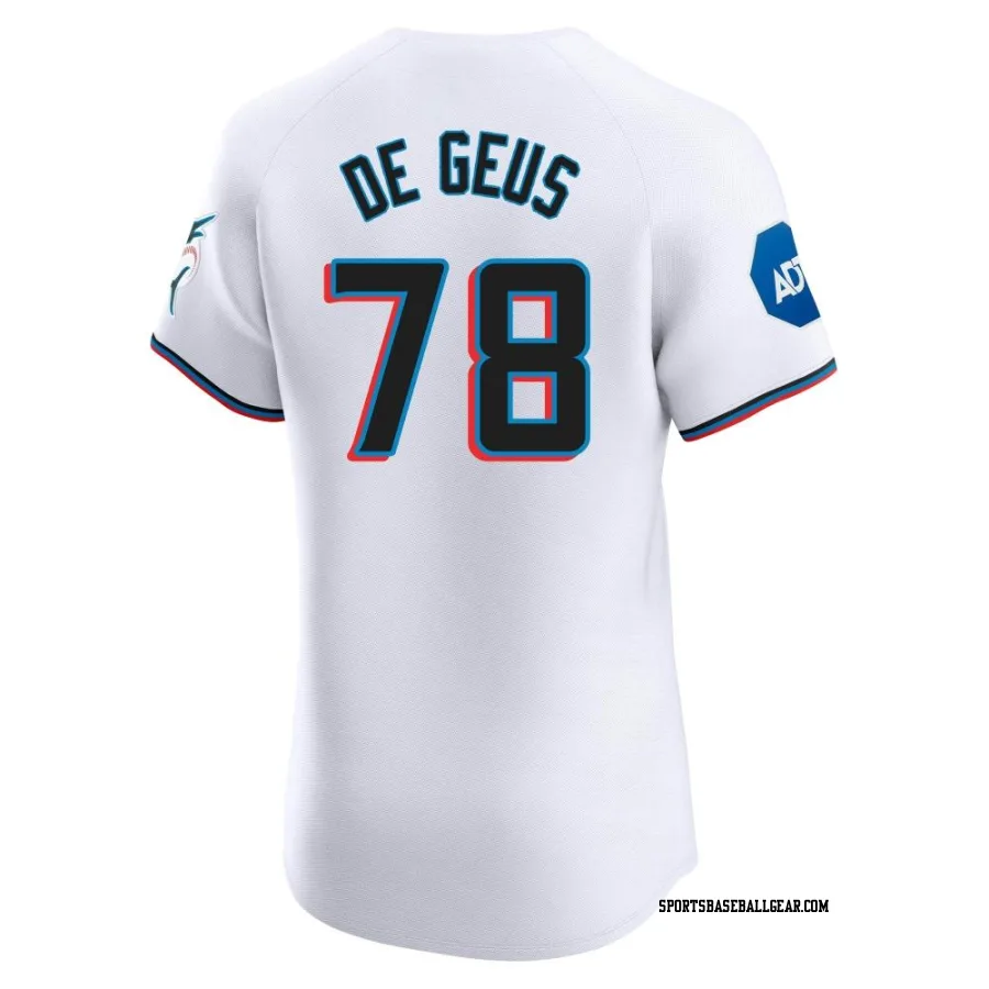 Brett de Geus Men's Miami Marlins White Elite Home Patch Jersey