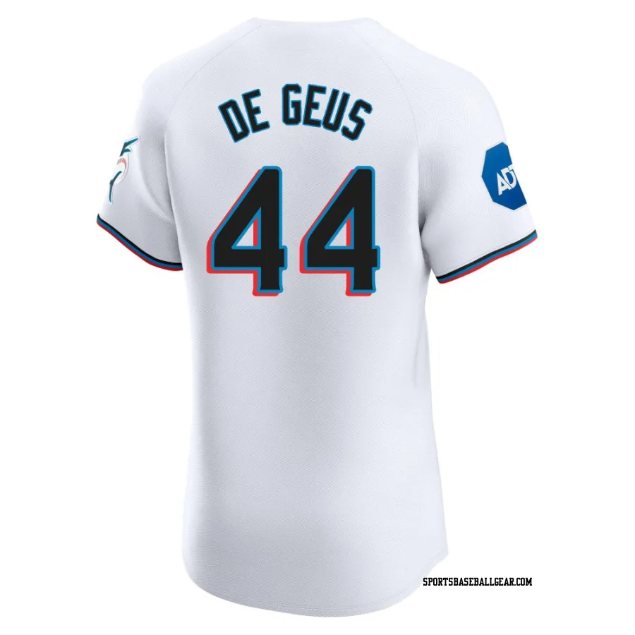 Get the Brett de Geus Men's Miami Marlins White Elite Home Patch Jersey, showcasing the latest design and premium quality for dedicated fans. Elevate your baseball wardrobe now!