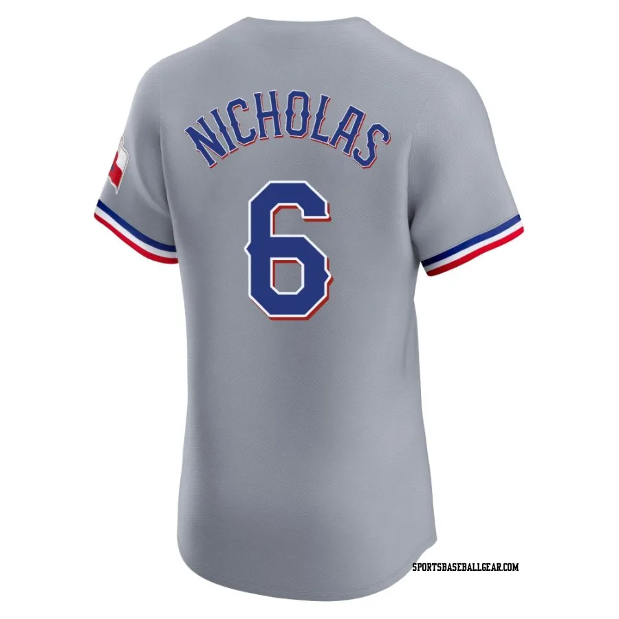 Get the Brett Nicholas Men's Texas Rangers Gray Elite Road Jersey, showcasing the latest design and premium quality for dedicated fans. Elevate your baseball wardrobe now!