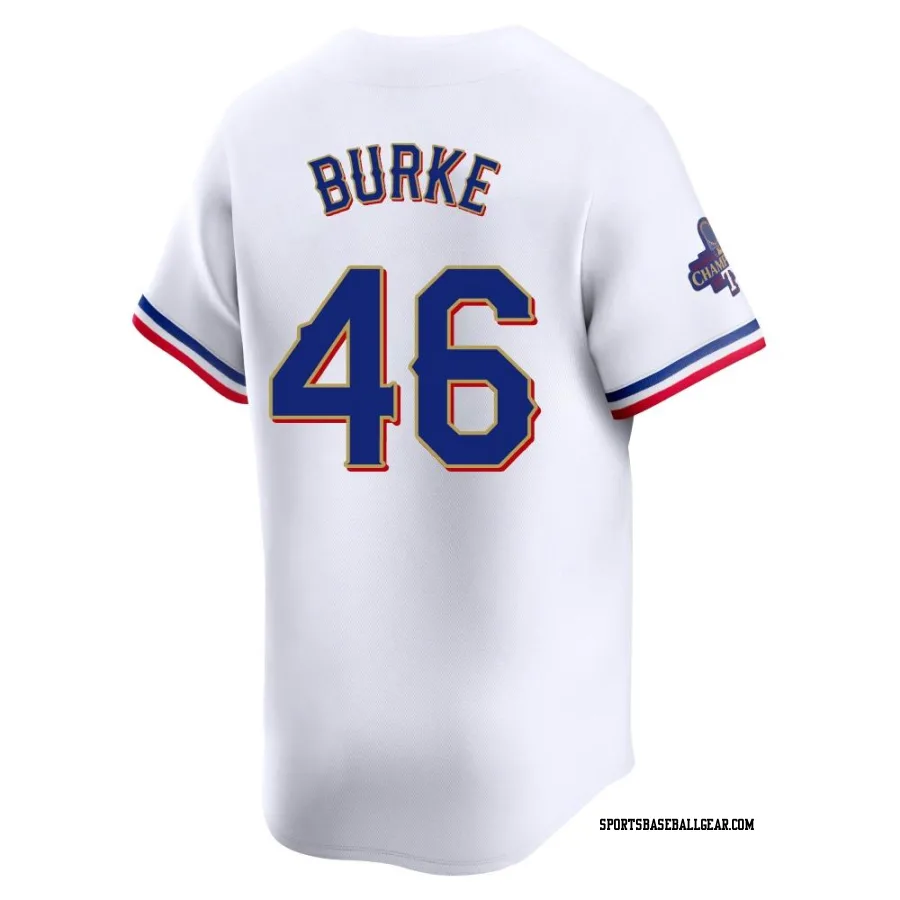 Get the Brock Burke Men's Texas Rangers Gold Limited White 2024 Collection Jersey, showcasing the latest design and premium quality for dedicated fans. Elevate your baseball wardrobe now!