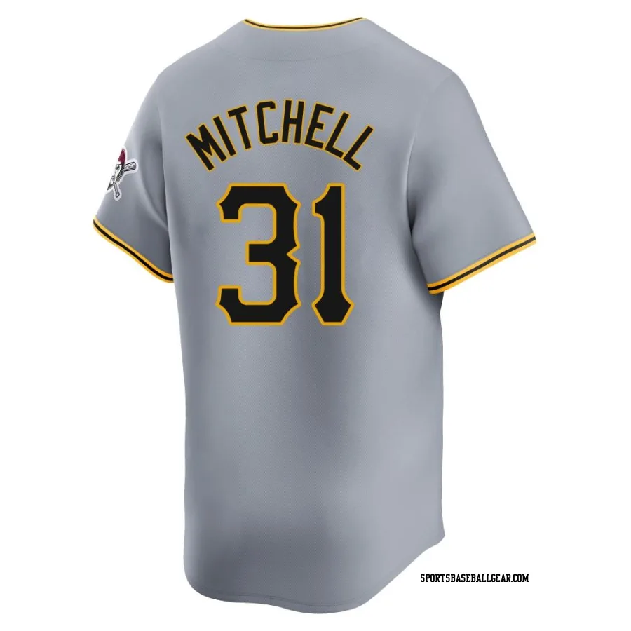 Get the Cal Mitchell Men's Pittsburgh Pirates Gray Limited Away Jersey, showcasing the latest design and premium quality for dedicated fans. Elevate your baseball wardrobe now!