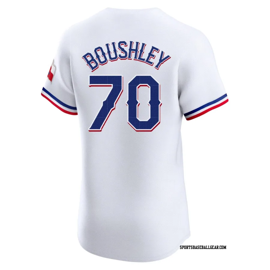 Get the Caleb Boushley Men's Texas Rangers White Elite Home Jersey, showcasing the latest design and premium quality for dedicated fans. Elevate your baseball wardrobe now!