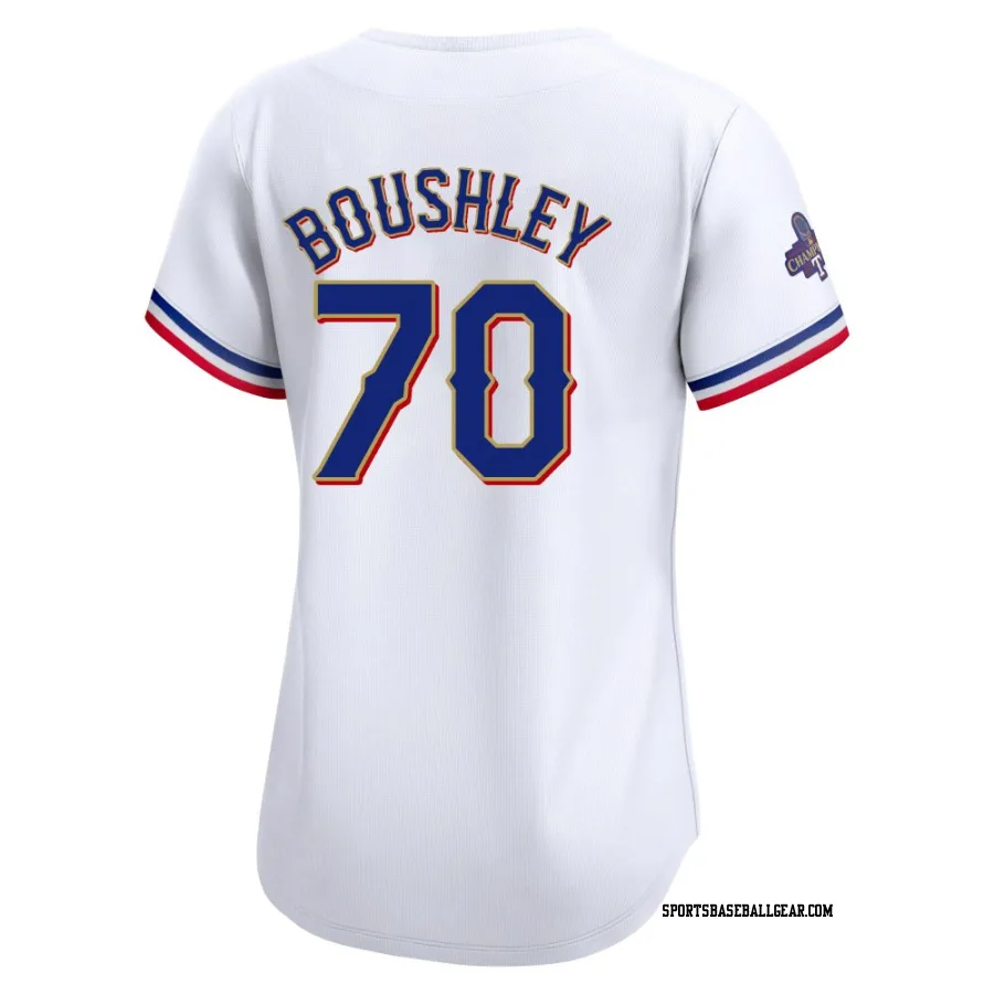 Get the Caleb Boushley Women's Texas Rangers Gold Limited White 2024 Collection Jersey, showcasing the latest design and premium quality for dedicated fans. Elevate your baseball wardrobe now!