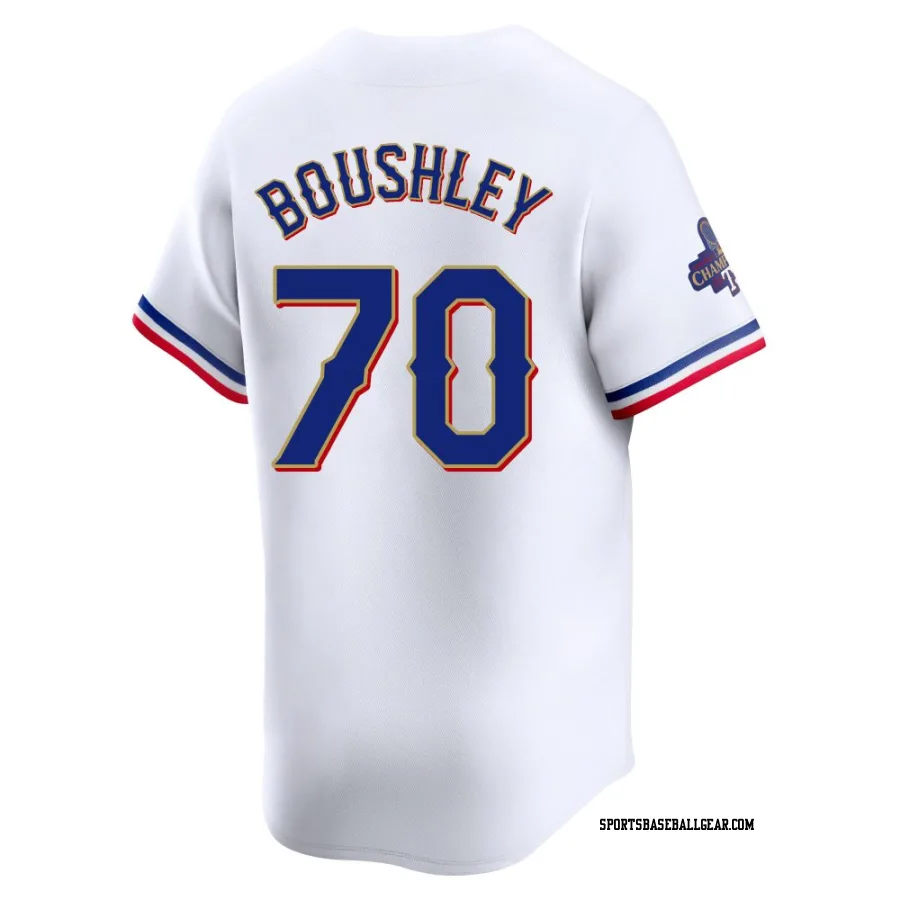 Get the Caleb Boushley Youth Texas Rangers Gold Limited White 2024 Collection Jersey, showcasing the latest design and premium quality for dedicated fans. Elevate your baseball wardrobe now!