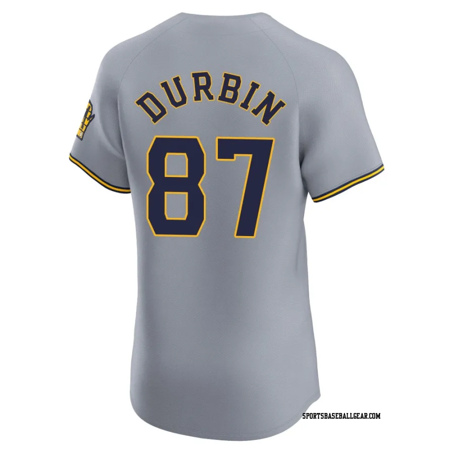 Get the Caleb Durbin Men's Milwaukee Brewers Gray Elite Road Jersey, showcasing the latest design and premium quality for dedicated fans. Elevate your baseball wardrobe now!