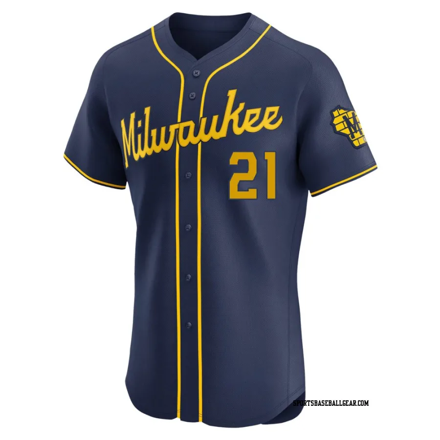 Get the Caleb Durbin Men's Milwaukee Brewers Navy Elite Alternate Jersey, showcasing the latest design and premium quality for dedicated fans. Elevate your baseball wardrobe now!