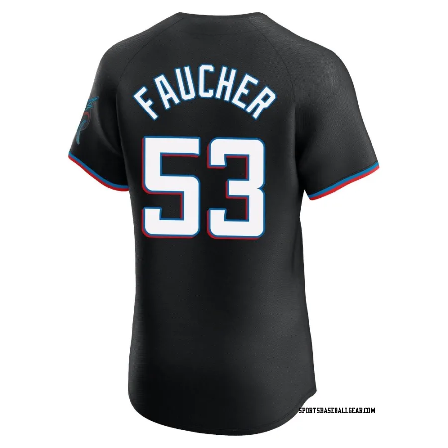 Get the Calvin Faucher Men's Miami Marlins Black Elite Alternate Vapor Premier Jersey, showcasing the latest design and premium quality for dedicated fans. Elevate your baseball wardrobe now!