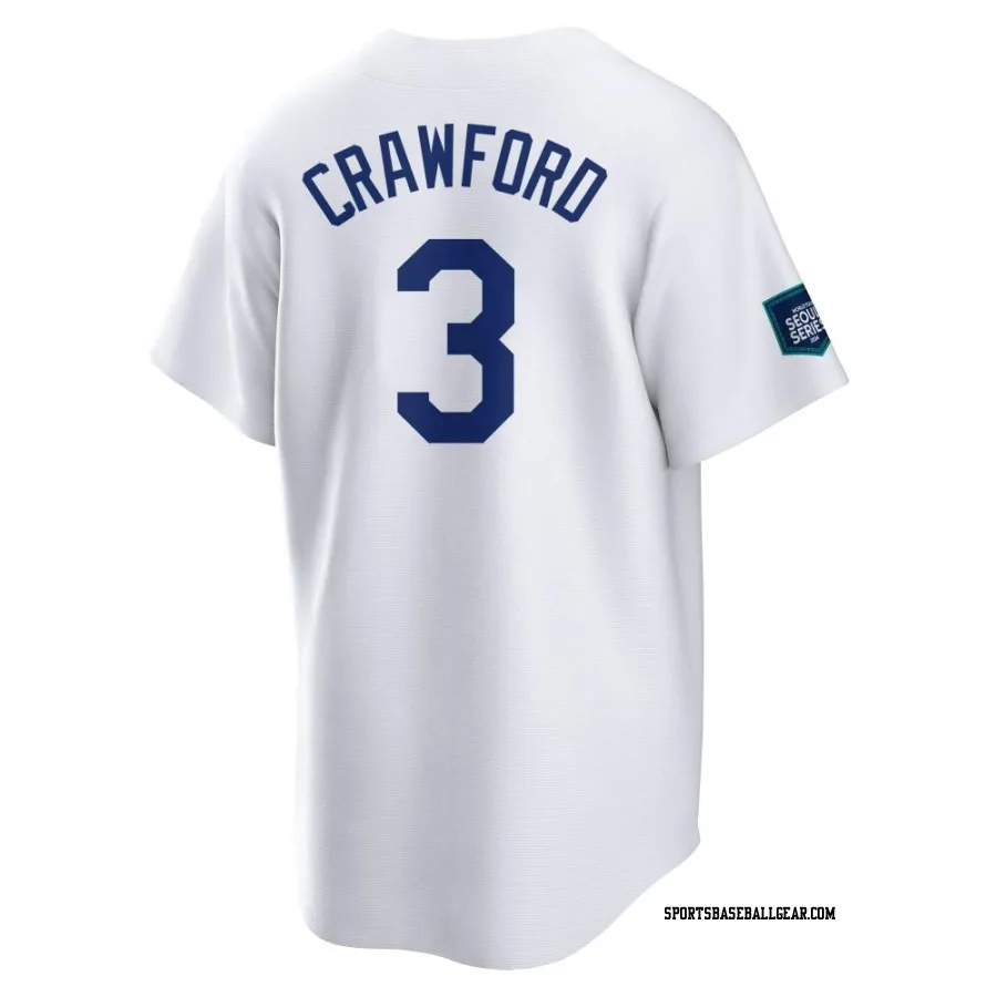 Get the Carl Crawford Youth Los Angeles Dodgers White Replica 2024 World Tour Seoul Series Home Jersey, showcasing the latest design and premium quality for dedicated fans. Elevate your baseball wardrobe now!