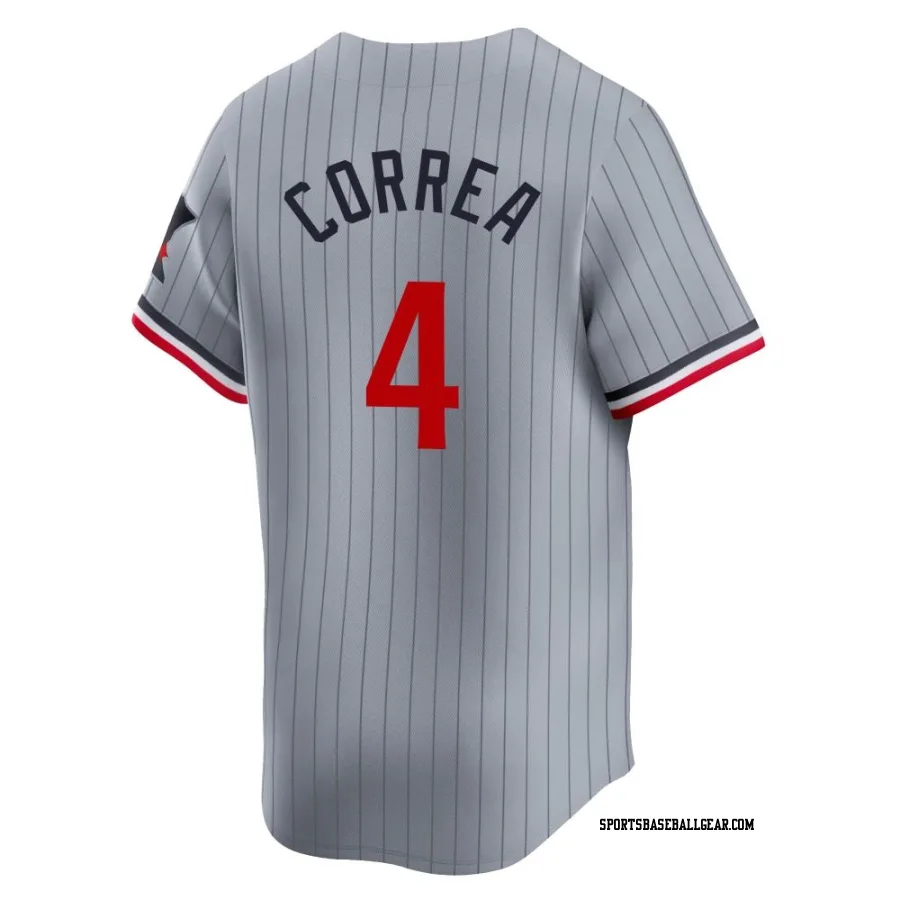 Get the Carlos Correa Men's Minnesota Twins Gray Limited Road Jersey, showcasing the latest design and premium quality for dedicated fans. Elevate your baseball wardrobe now!