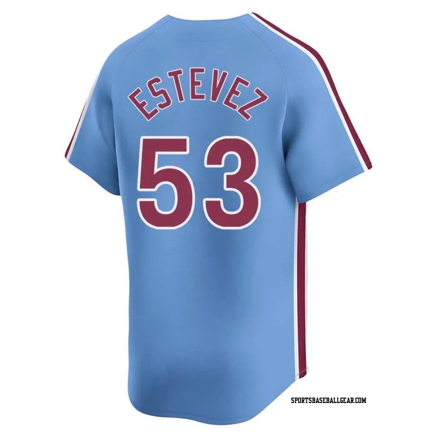 Get the Carlos Estevez Men's Philadelphia Phillies Light Blue Limited Alternate Jersey, showcasing the latest design and premium quality for dedicated fans. Elevate your baseball wardrobe now!