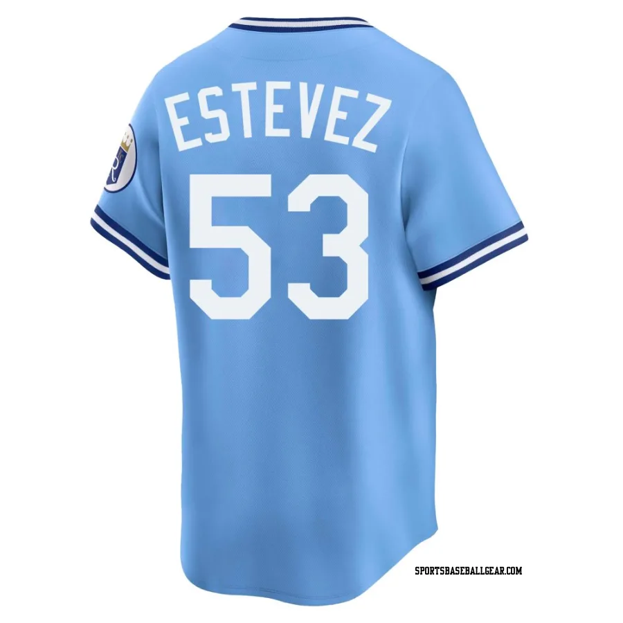Get the Carlos Estevez Youth Kansas City Royals Light Blue Limited Throwback Cooperstown Collection Jersey, showcasing the latest design and premium quality for dedicated fans. Elevate your baseball wardrobe now!